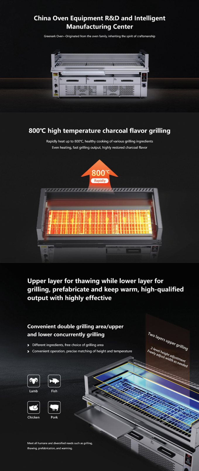 گرل الکتریکی تجاری حرفه ای برای رستوران ها، کامیون های غذا و خدمات غذایی. رسیدن به قدرت 800 درجه سانتیگراد با ایمنی گواهینامه CE، عملکرد انرژی کارآمد و طراحی صرفه جویی در فضا.درخواست نقل قول رایگان برای سفارشات عمده.